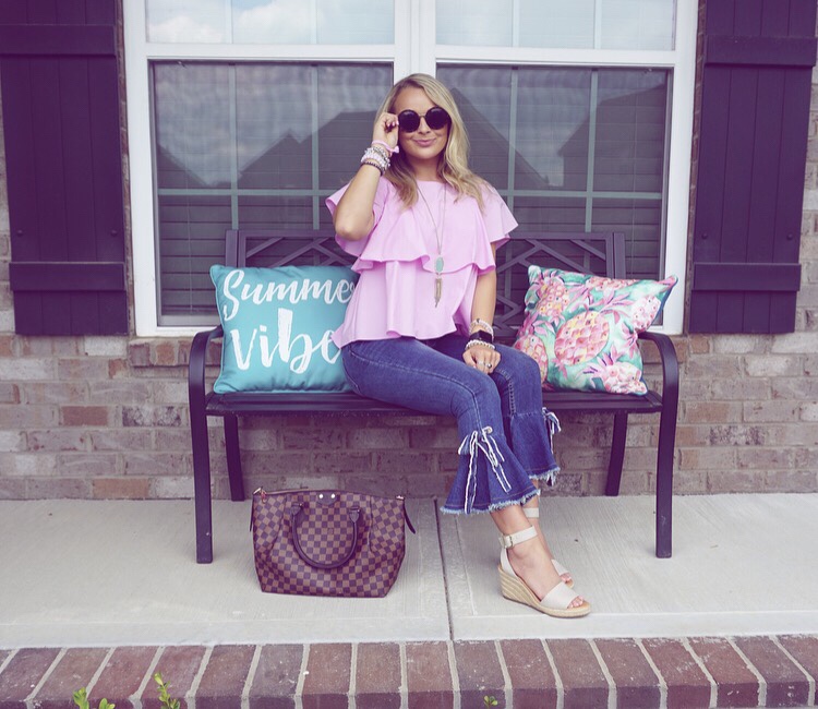 This pink top was also purchased at Dillard’s… and it was on sale!! YAS! That’s the best. I think it would also pair well with simple denim shorts and a cute pair of sandals. It is also Gianni Bini.