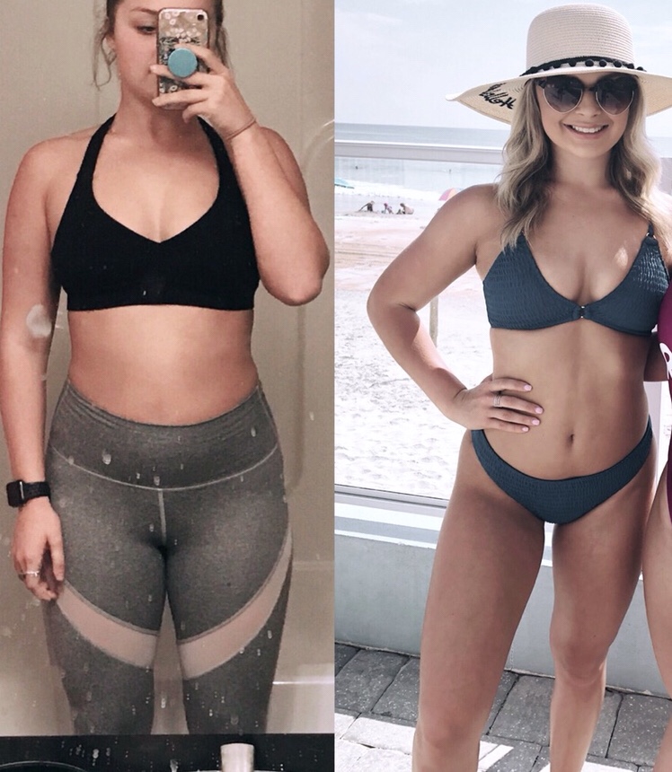 All of a sudden I was at my heaviest weight ever and I remember the light bulb going off. I realized I had gained the freshmen 15(or like 30 for me.) I felt so uncomfortable in my body and I knew that I had to make a change. I began eating smaller portions and drinking protein shakes. Protein shakes were seriously my life saver. I began “thriving” literally and the progress started happening. I