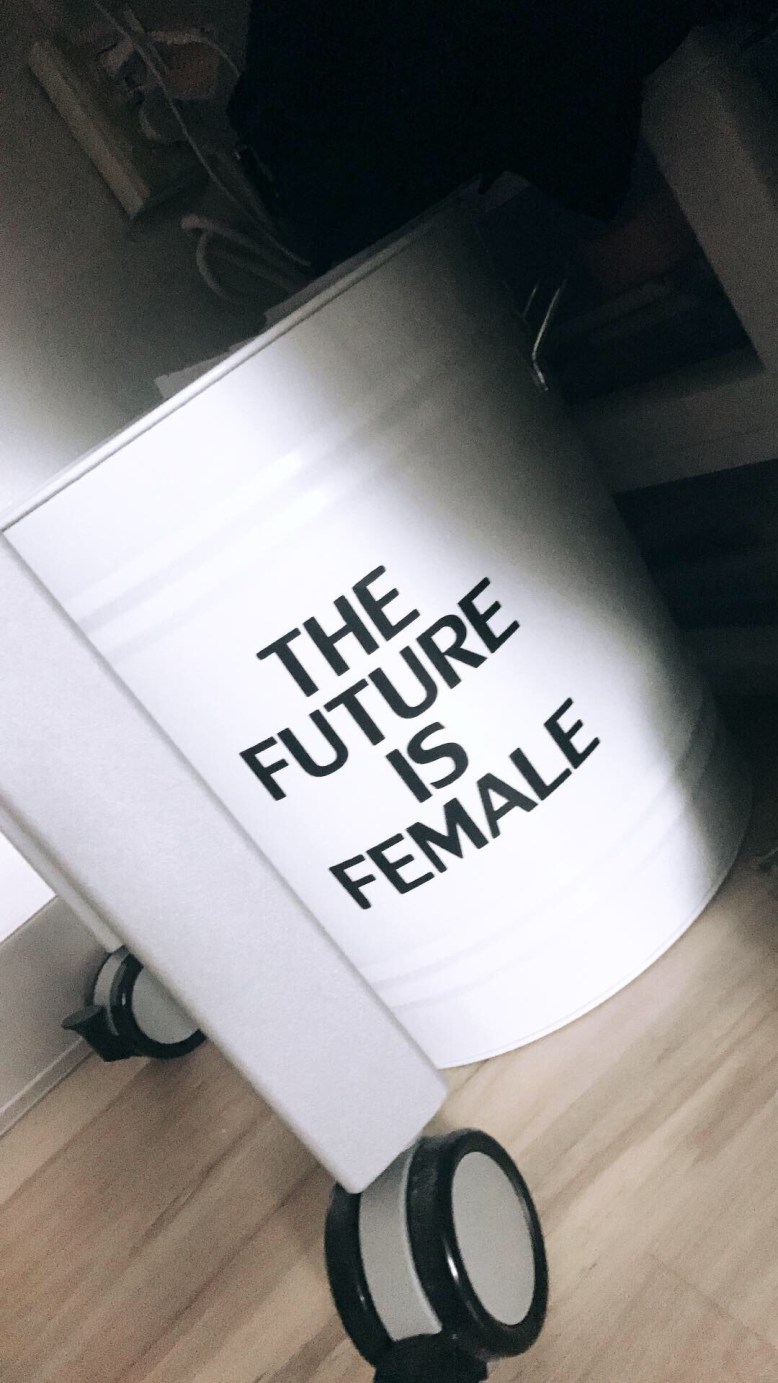 My slippers and the trash can were the finishing touches to the room.